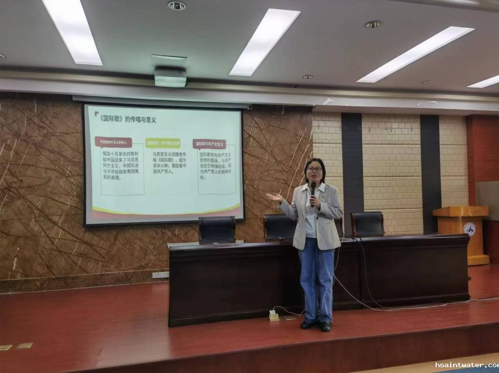 2024 年 10 月 10 日,由第一支部委员会和第三支部委员会主办的“歌以咏志,声动百年”音乐党课在仁艺楼四楼多功能厅顺利开展。学前教育专业各班团支书、班长及学生入党积极分子近百人前来聆听,音乐党课由张展瑞、马华、马辉、高柳莺四位党员教师主讲。